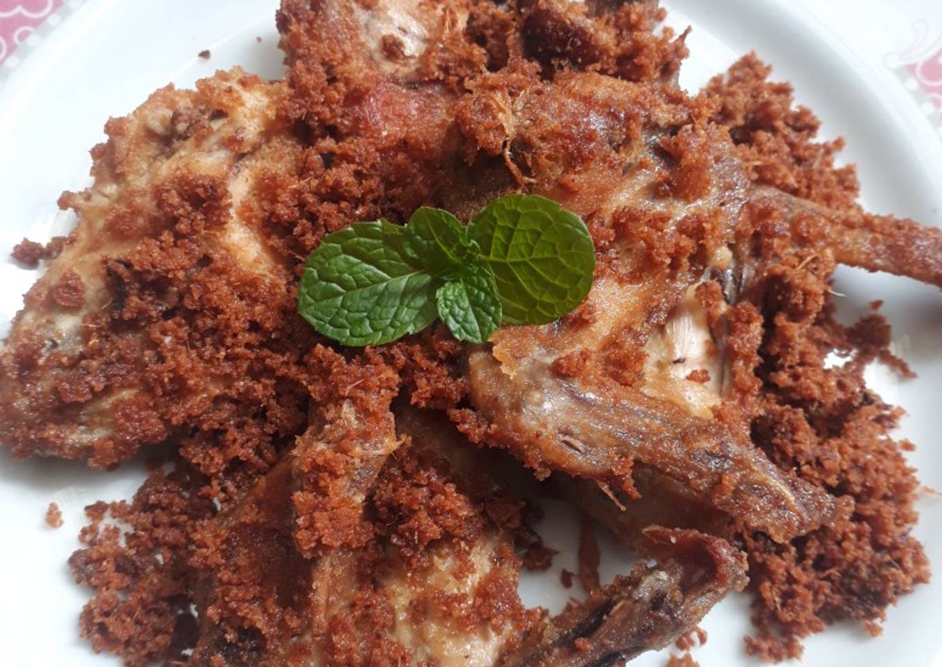 - Goreng ayam dalam minyak panas sampai kecoklatan. Goreng ayam dahulu sampai habis, terahir bumbunya. Tata ayam diatas piring, beri taburan bumbuš¤¤