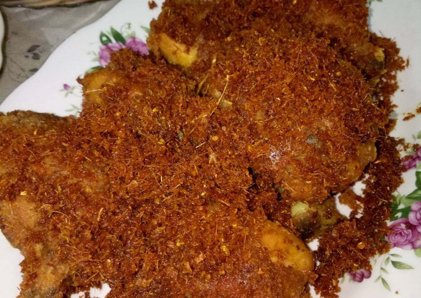- Goreng hingga warna kecoklatan, dan saring remahan bumbu dari minyak. Sajikan ayam beserta taburkan remahan bumbu di atas ayam. Ayam siap disantappp!! Yummy