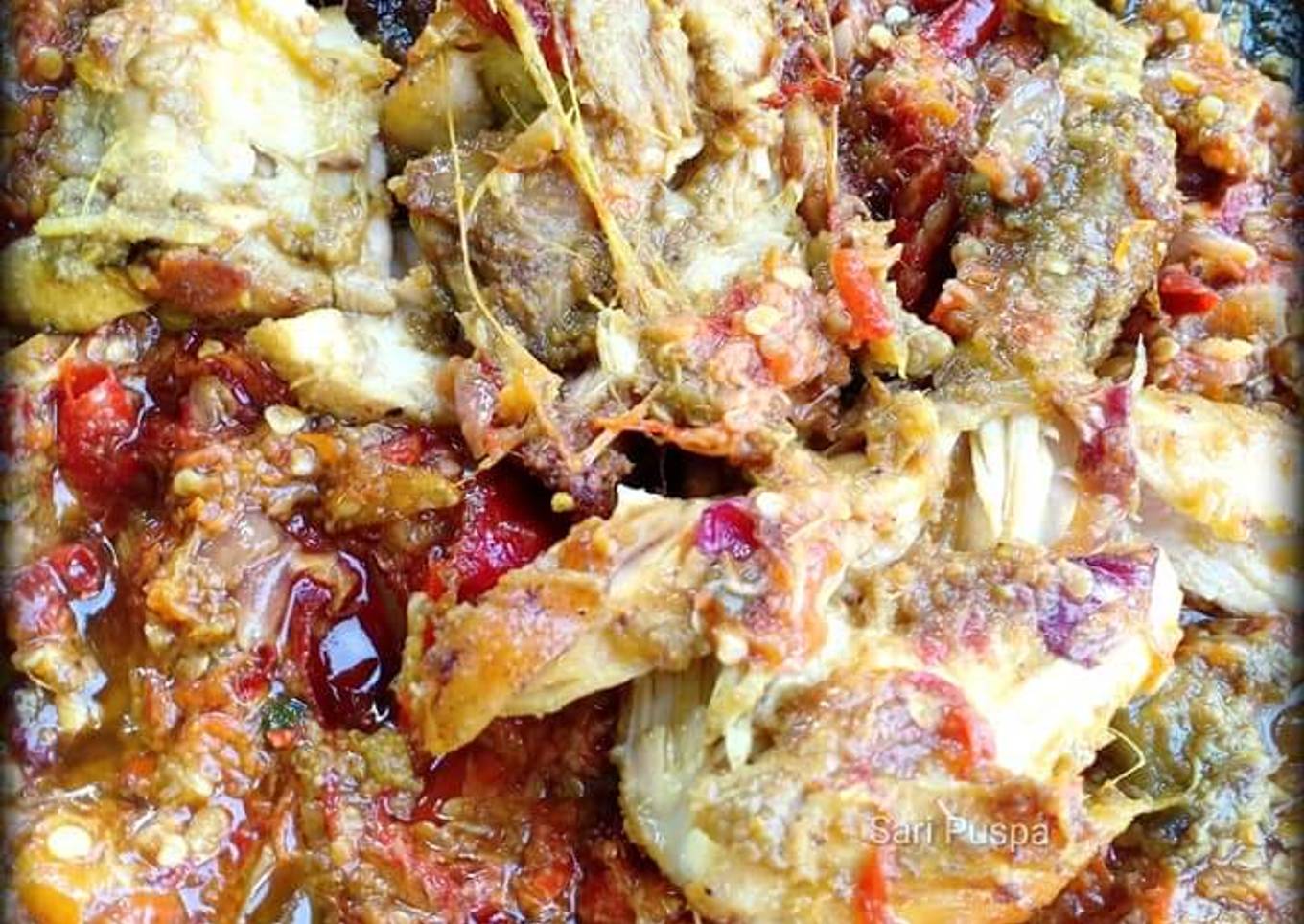 Tumis bumbu halus, sereh, daun salam dan daun jeruk smp harum. - Masukan ayam, tambahkan secukupnya air, masak sampai bumbu meresap dan agak kering berminyak (sambil sesekali di aduk spy tdk gosong) jgn lupa tes rasa lalu angkat.