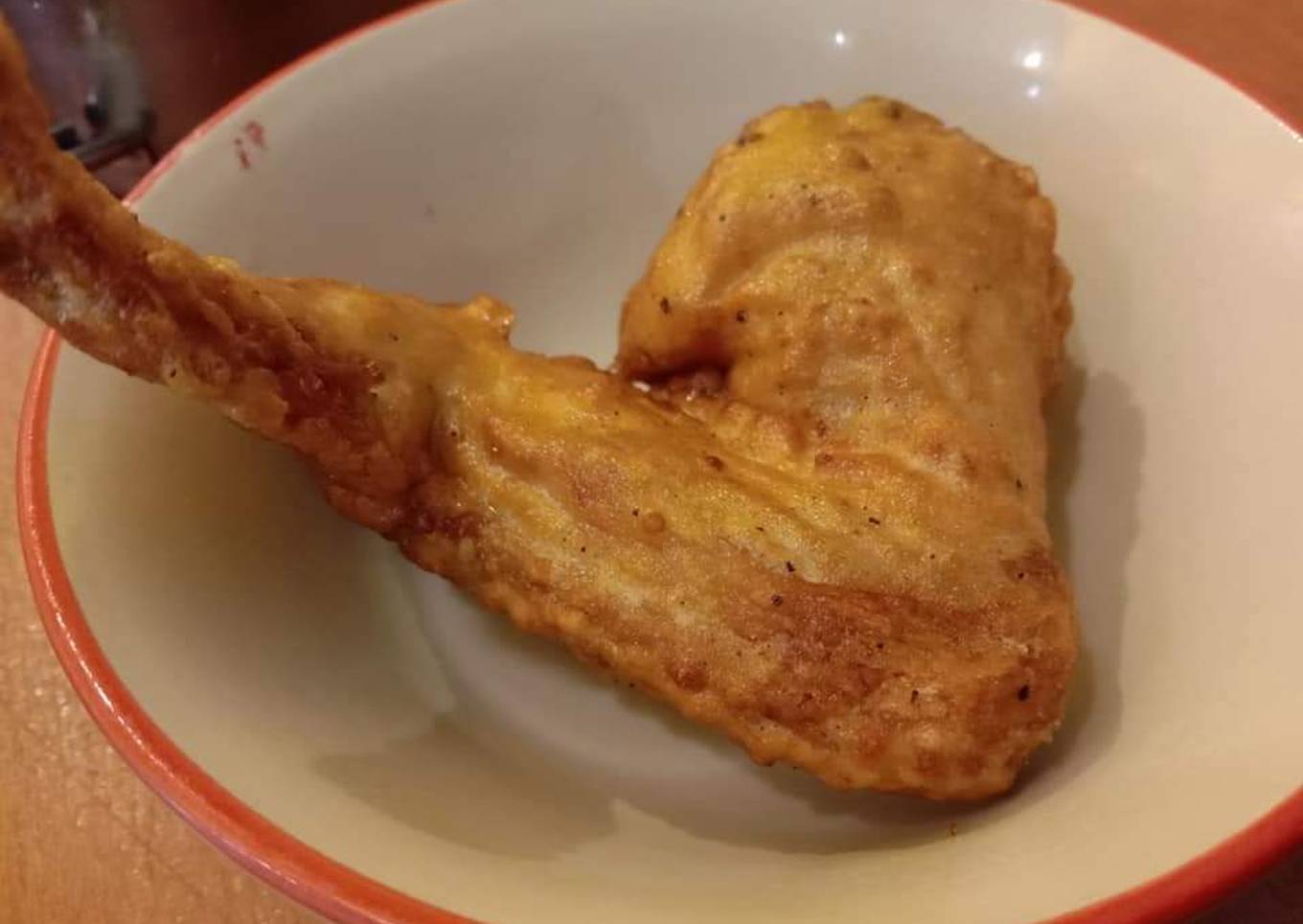 - Tepung ditambah air. Celup sayap per bji dan goreng hingga keemasan