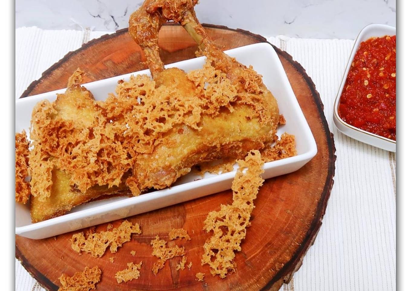- Sajikan ayam goreng dengan kremesan