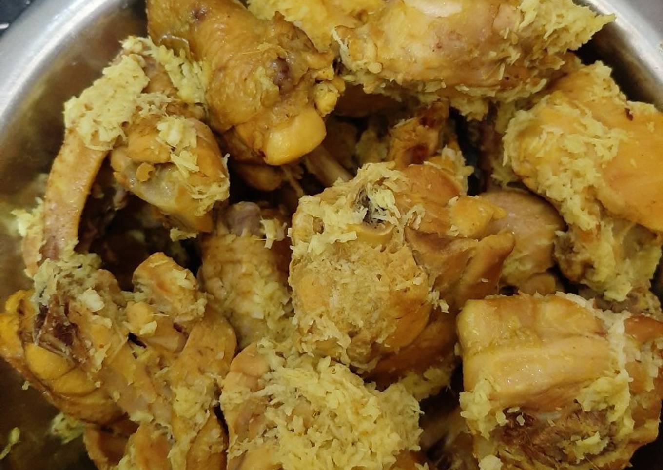 Foto ayam yg baru diangkat dari ungkepan, belum digoreng.