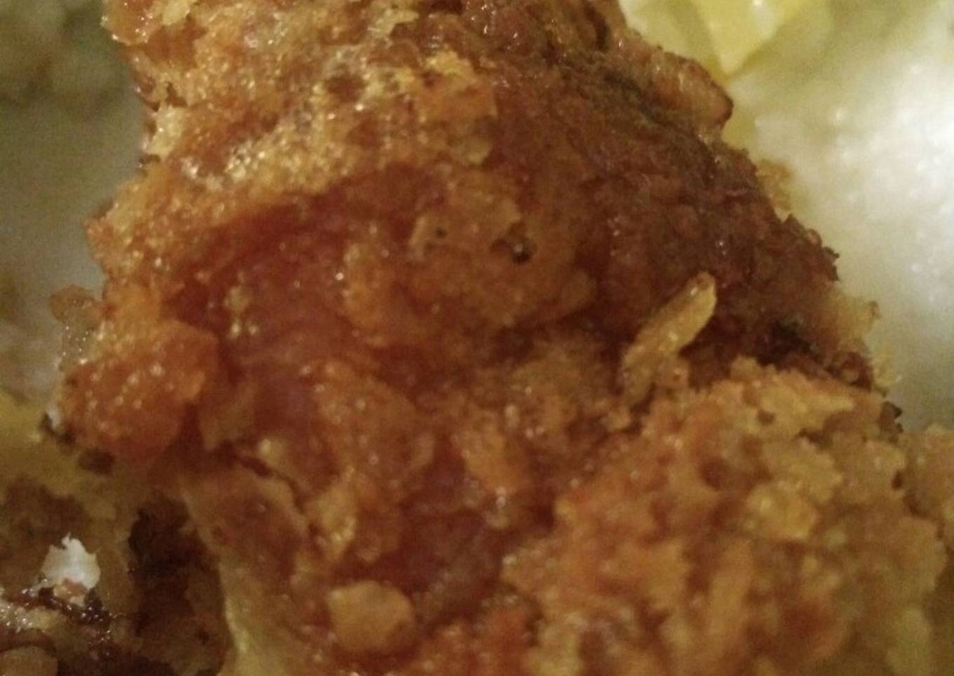 - Masukkn ayam ke tepung serbaguna n diamkn sekitar 8 menit