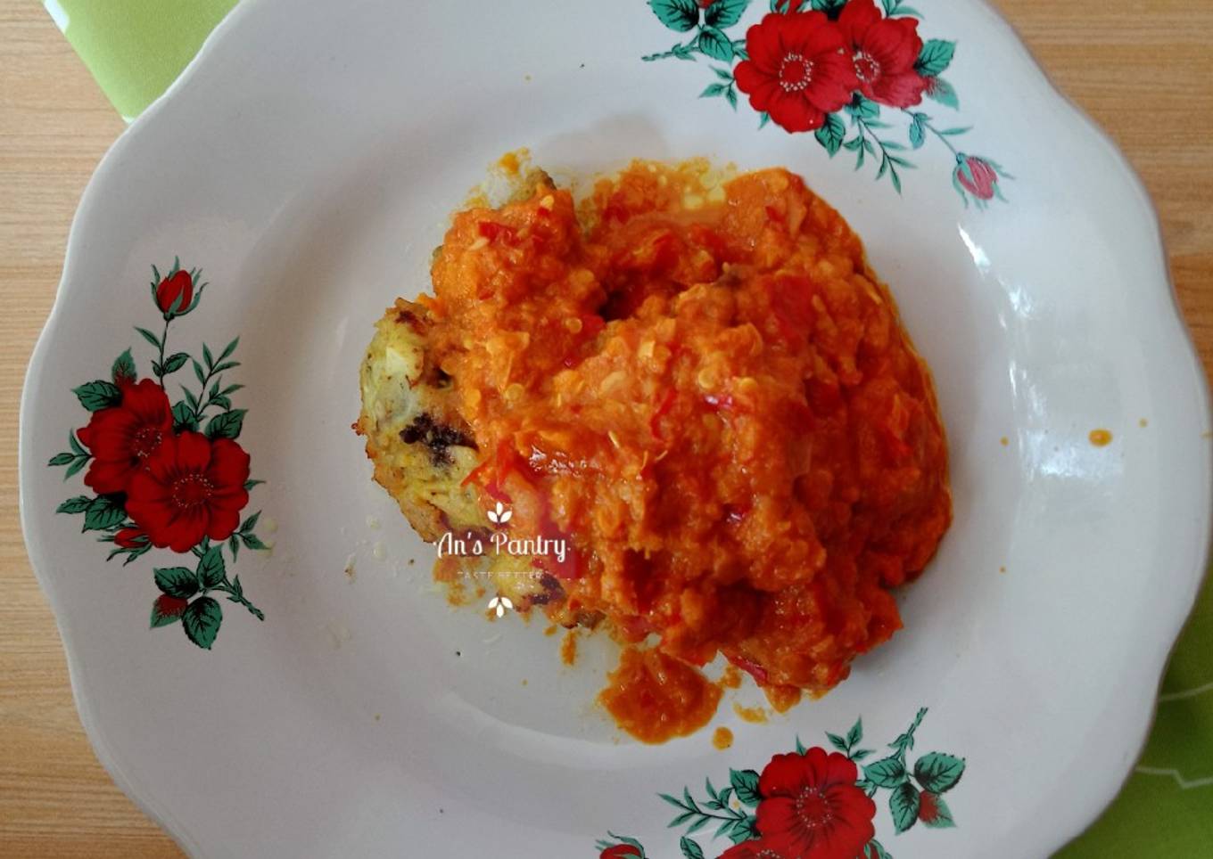 - Untuk saus haluskan semua bahan kecuali santan. Tumis hingga harum, lalu tambahkan santan. Aduk hingga mengental